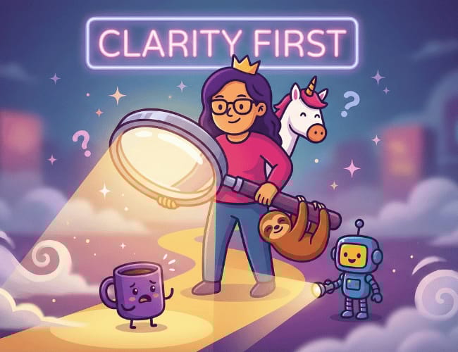 It's a guide that walks you through the clarity work that comes BEFORE the AI work. Because once you get clear on what you're actually avoiding, what would actually change if it got handled, and what you're actually afraid of - the AI part gets weirdly simple.